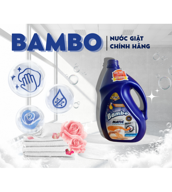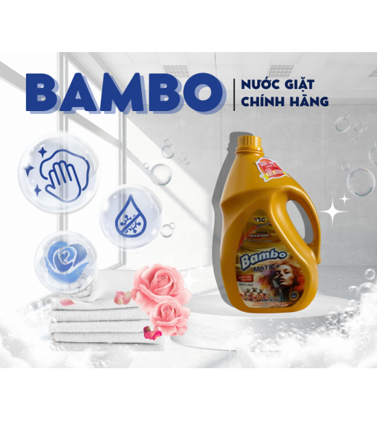 Nước giặt Bambo là sự kết hợp giặt và xả giúp tiết kiệm thời gian, công sức, mà còn đem đến sự hài lòng với áo quần ngát hương, với vải vóc mềm mại, với sự an toàn êm dịu cho cả làn da trẻ nhỏ.