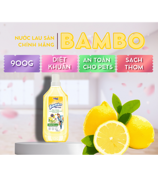 - Nước lau sàn Bambo có khả năng lau chùi mọi vết bẩn cứng đầu bám trên sàn nhà, trả lại cho bạn một không gian tươi mát và thơm ngát.